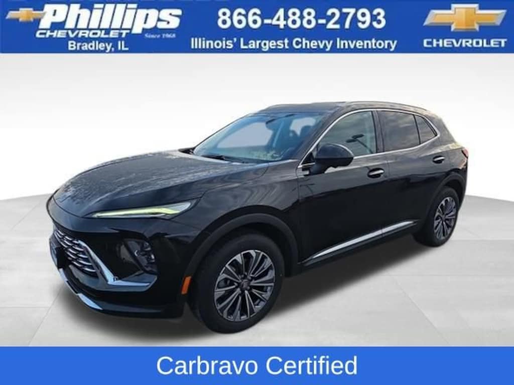 Carbravo Certified, One Owner, Apple CarPlay, Android Auto, AWD, Back Up Camera, Blind Spot Monitoring, Bluetooth, BOSE Audio, Forward Collision Alert, Lane Assist, Remote start, Heads Up Display, Lane Change Alert, Carfax Buyback Guarantee, Envision Preferred, 4D Sport Utility, 2.0L Turbocharged, 9-Speed Automatic, AWD, Ebony Twilight Metallic, Ebony w/Ebony Accents w/Perforated Leatherette Seat Trim, 30 Diagonal LCD Display, 4-Wheel Disc Brakes, ABS brakes, Air Conditioning, AM/FM radio: SiriusXM, Auto High-beam Headlights, Auto-dimming door mirrors, Auto-dimming Rear-View mirror, Automatic temperature control, Bose Premium 9-Speaker Audio System Feature, Brake assist, Bumpers: body-color, Compass, Driver 4-Way Power Lumbar Seat Adjuster, Driver 8-Way Power Seat Adjuster, Driver door bin, Driver vanity mirror, Dual front impact airbags, Dual front side impact airbags, Electronic Stability Control, Emergency communication system: OnStar and Buick connected services capable, Exterior Parking Camera Rear, Four wheel independent suspension, Front anti-roll bar, Front Bucket Seats, Front Center Armrest, Front Passenger 6-Way Manual Seat Adjuster, Front reading lights, Fully automatic headlights, Heads-Up Display, Heated door mirrors, Illuminated entry, Knee airbag, Leather steering wheel, Low tire pressure warning, Memory seat, Navigation System, Occupant sensing airbag, Outside temperature display, Overhead airbag, Overhead console, Passenger door bin, Passenger vanity mirror, Perforated Leatherette Seat Trim, Power door mirrors, Power Liftgate, Preferred Equipment Group 1SC, Premium audio system: Buick Infotainment System, Radio data system, Radio: Infotainment Center, Rear anti-roll bar, Rear reading lights, Rear seat center armrest, Rear window defroster, Rear window wiper, Remote keyless entry, Security system, SiriusXM Trial Subscription, Speed control, Split folding rear seat, Spoiler, Steering wheel mounted audio controls, Telescoping steering wheel, Tilt steering wheel, Traction control, Trip computer, Variably intermittent wipers, Wheels: 18 Alloy with Technical Gray, Wireless Apple CarPlay/Wireless Android Auto. CARFAX One-Owner. Clean CARFAX. Certified. Ebony Twilight Metallic 2025 Buick Envision Preferred AWD 9-Speed Automatic 2.0L Turbocharged22/28 City/Highway MPGCertification Program Details: Type your description hereWith the internet today, a great value shouldn't be hard to find. Here at Phillips Chevrolet we do the research for you. We monitor the market daily to ensure our customers are getting the best value achievable. We price all of our vehicles to make the buying process as simple and easy as possible. Our internet prices are just one factor that makes us the #1, #2, and out to be the #3 Chevrolet dealerships in Illinois. The future #3 Chevy dealership in Illinois is conveniently located at 1400 Locke Drive, the corner of I-57 & IL 50, in Bradley/Bourbonnais, IL 60914.