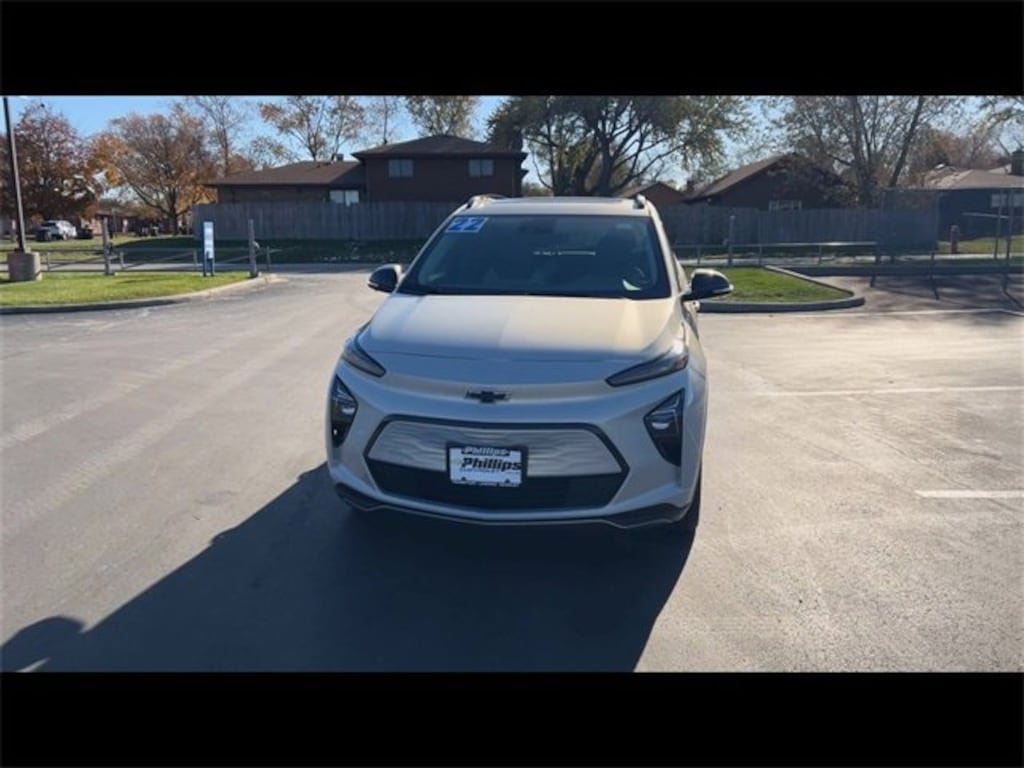 CarBravo Certified, ONE Owner!, Accident FREE, No Added Cert. Fees, Certified Multi-Point Inspection, Sunroof, Bose Audio, Heated Seats, Apple CarPlay, Keyless Entry, Ventilated Seats, Forward Collision Alert, Side Blind Zone Alert, Rear Cross Traffic Alert, Backup Camera, BLUETOOTH, Power Windows/Locks, Power Seating, PUSH BUTTON START!, FRONT PEDESTRIAN BRAKING, INTELLIBEAM, Remote Start, 17 WHEELS!, Lane Departure Warning, Lane Keep Assist, Adaptive Cruise Control, Carfax Buyback Guarantee, SUN & SOUND PACKAGE, Bolt EUV Premier, 4D Sport Utility, Electric Motor, 1-Speed Automatic, FWD, Silver Flare Metallic, Dark Ash Gray/Sky Cool Gray w/Perforated Leather-Appointed Seat Trim, 2-Way Power Driver Lumbar Seat Adjuster, 4-Wheel Disc Brakes, 6-Way Manual Passenger Seat Adjuster, 8-Way Power Driver Seat Adjuster, ABS brakes, Air Conditioning, AM/FM radio: SiriusXM with 360L, Apple CarPlay/Android Auto, Auto High-beam Headlights, Auto-dimming Rear-View mirror, Automatic temperature control, Bose Premium 7-Speaker Audio System, Brake assist, Bumpers: body-color, Compass, Driver door bin, Driver vanity mirror, Dual front impact airbags, Dual front side impact airbags, Electronic Stability Control, Emergency communication system: OnStar and Chevrolet connected services capable, Front anti-roll bar, Front Bucket Seats, Front Center Armrest, Front reading lights, Front wheel independent suspension, Fully automatic headlights, Heated door mirrors, Heated Driver & Front Passenger Seats, Heated rear seats, Heated steering wheel, Illuminated entry, Knee airbag, Low tire pressure warning, Navigation System, Occupant sensing airbag, Outside temperature display, Overhead airbag, Overhead console, Passenger door bin, Passenger vanity mirror, Perforated Leather-Appointed Seat Trim, Performance Ride & Handling Suspension, Power door mirrors, Power Dual Panel Panoramic Sunroof w/Slide, Preferred Equipment Group 2LZ, Radio: Chevrolet Infotainment 3 Plus System w/Navi, Rain sensing wipers, Rear side impact airbag, Rear window defroster, Rear window wiper, Remote keyless entry, Roof rack: rails only, Security system, SiriusXM Radio w/360L, Speed control, Split folding rear seat, Steering wheel mounted audio controls, Sun & Sound Package, Traction control, Turn signal indicator mirrors, Variably intermittent wipers, Ventilated Driver Seat, Ventilated Front Passenger Seat, Wheels: 17 Machined-Face Aluminum. 2022 Chevrolet Bolt EUV Silver Flare Metallic Premier 4D Sport Utility FWD 1-Speed Automatic 125/104 City/Highway MPG Electric Motor125/104 City/Highway MPGCertification Program Details: Type your description hereWith the internet today, a great value shouldnât be hard to find. Here at Phillips Chevrolet we do the research for you. We monitor the market daily to ensure our customers are getting the best value achievable. We price all of our vehicles to make the buying process as simple and easy as possible. Our internet prices are just one factor that makes us the #1, #2, and out to be the #3 Chevrolet dealerships in Illinois. The #2 Chevy dealership in Illinois is conveniently located just a one block south of 80/94, at 17730 S Torrence Avenue in Lansing, IL 60438.