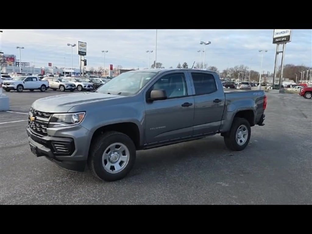 Carbravo Certified, Certifed Multi Point Inspection, One Owner, Carfax- Accident Free, Apple CarPlay, Android Auto, Convenience Package, 4WD, Back Up Camera, Bluetooth, Cruise Control, Power Locks, Power Seating, Power Windows, Trailering Package, 17 Wheels, Carfax Buyback Guarantee, Colorado Work Truck, 4D Crew Cab, V6, 8-Speed Automatic, 4WD, Satin Steel Metallic, Jet Black/Dark Ash w/Cloth Seat Trim, 3.42 Rear Axle Ratio, 4-Wheel Disc Brakes, 6-Speaker Audio System Feature, ABS brakes, Air Conditioning, AM/FM radio: SiriusXM, Apple CarPlay/Android Auto, Bumpers: body-color, Driver 4-Way Power Seat Adjuster, Driver door bin, Dual front impact airbags, Dual front side impact airbags, Electronic Automatic Cruise Control, Electronic Stability Control, Extended Range Remote Keyless Entry, Exterior Parking Camera Rear, EZ-Lift & Lower Tailgate, Front anti-roll bar, Front Bucket Seats, Front Center Armrest, Front wheel independent suspension, Fully automatic headlights, Low tire pressure warning, Occupant sensing airbag, Overhead airbag, Passenger door bin, Passenger vanity mirror, Power driver seat, Power steering, Power windows, Preferred Equipment Group 4WT, Premium audio system: Chevrolet Infotainment 3, Radio data system, Radio: Chevrolet Infotainment 3 System, Rear seat center armrest, Rear step bumper, Remote Locking Tailgate, SiriusXM Radio, Speed-sensing steering, Tachometer, Tilt steering wheel, Traction control, Trip computer, Unauthorized Entry Theft-Deterrent System, Variably intermittent wipers, Wheels: 17 x 8 Ultra Silver Metallic Steel, WT Convenience Package. CARFAX One-Owner. Clean CARFAX. Certified. Satin Steel Metallic 2022 Chevrolet Colorado Work Truck 4WD 8-Speed Automatic V6