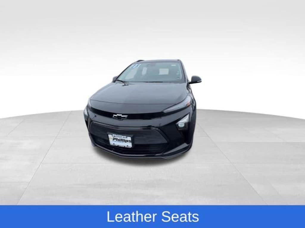 CarBravo Certified, Leather Seats, Backup Camera, Remote Start, Pwr Dr Seat, Forward Collision Alert, Side Blind Zone Alert, Rear Cross Traffic Alert, Lane Departure Warning, Lane Change Alert, Lane Keep Assist, Rear Park Assist, Heated Seats, Heated Steering Wheel, Ventilated Seats, Apple CarPlay, Aluminum Wheels, Carfax Buyback Guarantee, Bolt EUV LT, 4D Sport Utility, Electric Motor, 1-Speed Automatic, FWD, Mosaic Black Metallic, Jet Black/Nightshift Blue w/Perforated Leather-Appointed Seat Trim, 2-Way Power Driver Lumbar Seat Adjuster, 4-Wheel Disc Brakes, 6-Speaker Audio System, 6-Way Manual Driver Seat Adjuster, 6-Way Manual Passenger Seat Adjuster, 8-Way Power Driver Seat Adjuster, ABS brakes, Air Conditioning, AM/FM radio: SiriusXM with 360L, Apple CarPlay/Android Auto, Auto High-beam Headlights, Auto-Dimming Inside Rear-View Mirror, Automatic temperature control, Brake assist, Bumpers: body-color, Comfort Package, Compass, Convenience Package, Driver Confidence Package, Driver door bin, Driver vanity mirror, Dual front impact airbags, Dual front side impact airbags, Electronic Stability Control, Emergency communication system: OnStar and Chevrolet connected services capable, Flat-Bottom Leather-Wrapped Steering Wheel, Front anti-roll bar, Front Bucket Seats, Front Center Armrest, Front Passenger Seatback Map Pocket, Front reading lights, Front wheel independent suspension, Fully automatic headlights, Heated door mirrors, Heated Driver & Front Passenger Seats, Heated Steering Wheel, Illuminated entry, Knee airbag, Lane Change Alert w/Side Blind Zone Alert, Low tire pressure warning, Occupant sensing airbag, Outside temperature display, Overhead airbag, Overhead console, Passenger vanity mirror, Perforated Leather-Appointed Seat Trim, Performance Ride & Handling Suspension, Power door mirrors, Preferred Equipment Group 2LT, Premium audio system: Chevrolet Infotainment 3 Plus, Radio: Chevrolet Infotainment 3 Plus System, Rear Center Armrest, Rear Cross-Traffic Alert, Rear Park Assist, Rear reading lights, Rear side impact airbag, Rear window defroster, Rear window wiper, Remote keyless entry, Roof rack: rails only, SD Card Receptacle, Security system, SiriusXM Radio w/360L, Speed control, Split folding rear seat, Steering wheel mounted audio controls, Telescoping steering wheel, Traction control, Trip computer, Turn signal indicator mirrors, Variably intermittent wipers, Ventilated Driver Seat, Ventilated Front Passenger Seat, Wheels: 17 Dark Android Painted Aluminum. 2023 Chevrolet Bolt EUV Mosaic Black Metallic LT 4D Sport Utility FWD 1-Speed Automatic 125/104 City/Highway MPG Electric Motor