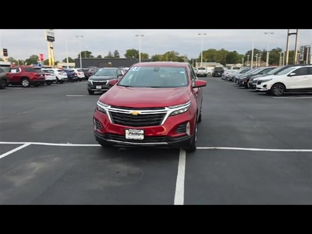 Carbravo Certified, Certifed Multi Point Inspection, One Owner, Carfax- Accident Free, Apple CarPlay, Android Auto, Keyless Entry, Auto Check - Accident free, Back Up Camera, Blind Spot Monitoring, Bluetooth, Cruise Control, Heated seats, Forward Collision Alert, Lane Assist, Power Locks, Power Seating, Power Windows, Push Button Start, Rear Traffic Alert, Remaining factory warranty, Remote Power Liftgate, Remote start, Rear Park Assist, Side Blind Zone Alert, Lane Change Alert, Power Lift Gate, Carfax Buyback Guarantee, No Added Cert Fees, Equinox LT, 4D Sport Utility, 1.5L DOHC, 6-Speed Automatic Electronic with Overdrive, FWD, Radiant Red Tintcoat, Jet Black w/Premium Cloth Seat Trim, 17 Aluminum Wheels, 2 Rear USB Charging-Only Ports, 2 USB Ports & Auxiliary Input Jack, 2-Way Power Driver Lumbar Control Seat Adjuster, 3.50 Final Drive Axle Ratio, 4-Wheel Disc Brakes, 6-Speaker Audio System Feature, ABS brakes, AM/FM radio: SiriusXM, Auto High-beam Headlights, Bluetooth® For Phone, Brake assist, Bumpers: body-color, Compass, Confidence & Convenience Package, Delay-off headlights, Driver 8-Way Power Seat Adjuster, Driver Confidence II Package, Driver Convenience Package, Driver door bin, Driver vanity mirror, Dual front impact airbags, Dual front side impact airbags, Dual-Zone Automatic Climate Control, Electronic Stability Control, Emergency communication system: OnStar and Chevrolet connected services capable, Four wheel independent suspension, Front & Rear Park Assist, Front anti-roll bar, Front Bucket Seats, Front Center Armrest, Front Passenger 4-Way Manual Seat Adjuster, Front reading lights, Fully automatic headlights, Heated door mirrors, Heated Driver & Front Passenger Seats, Illuminated entry, Lane Change Alert w/Side Blind Zone Alert, Low tire pressure warning, Occupant sensing airbag, Outside temperature display, Overhead airbag, Overhead console, Panic alarm, Passenger door bin, Passenger vanity mirror, Power door mirrors, Power driver seat, Power steering, Power windows, Preferred Equipment Group 1LT, Premium Cloth Seat Trim, Radio: Chevrolet Infotainment 3 System w/AM/FM, Rear anti-roll bar, Rear Cross Traffic Alert, Rear Power Liftgate, Rear reading lights, Rear seat center armrest, Rear window defroster, Rear window wiper, Remote keyless entry, Remote Start, Security system, Side Blind Zone & Rear Cross Traffic, SiriusXM Radio, Speed control, Speed-sensing steering, Split folding rear seat, Spoiler, Steering wheel mounted audio controls, Tachometer, Telescoping steering wheel, Tilt steering wheel, Traction control, Trip computer, Variably intermittent wipers, Wireless Apple CarPlay/Wireless Android Auto, Wrapped Steering Wheel. CARFAX One-Owner. Clean CARFAX. Certified. Radiant Red Tintcoat 2023 Chevrolet Equinox LT FWD 6-Speed Automatic Electronic with Overdrive 1.5L DOHCOdometer is 5619 miles below market average! 26/31 City/Highway MPGCertification Program Details: Type your description hereWith the internet today, a great value shouldn't be hard to find. Here at Phillips Chevrolet we do the research for you. We monitor the market daily to ensure our customers are getting the best value achievable. We price all of our vehicles to make the buying process as simple and easy as possible. Our internet prices are just one factor that makes us the #1, #2, and out to be the #3 Chevrolet dealerships in Illinois. The future #3 Chevy dealership in Illinois is conveniently located at 1400 Locke Drive, the corner of I-57 & IL 50, in Bradley/Bourbonnais, IL 60914.
