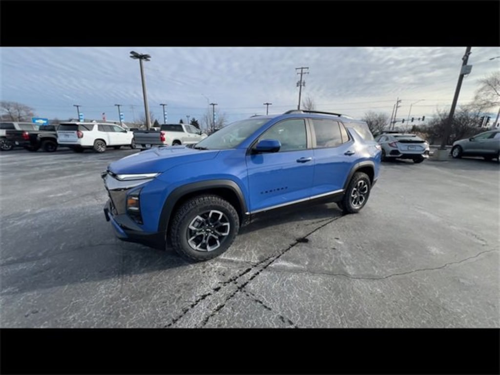 Low Miles, CarBravo Certified, Panoramic Roof, Backup Camera, Remote Start, Pwr Dr Seat, Forward Collision Alert, Navigation, Side Blind Zone Alert, Rear Cross Traffic Alert, Lane Departure Warning, Lane Change Alert, Lane Keep Assist, Rear Park Assist, Adaptive Cruise Control, Heated Seats, Heated Steering Wheel, Memory Seating, Power Liftgate, Apple CarPlay, Aluminum Wheels, Carfax Buyback Guarantee, Equinox ACTIV, 4D Sport Utility, 1.5L DOHC, CVT, FWD, Reef Blue Metallic, Maple Sugar w/Sueded Microfiber Seat Trim, 2-Way Power Driver Lumbar Control Seat Adjuster, 4-Wheel Disc Brakes, 6 Speakers, ABS brakes, Air Conditioning, AM/FM radio: SiriusXM, Auto High-beam Headlights, Automatic temperature control, Brake assist, Bumpers: body-color, Compass, Convenience Package III, Driver 8-Way Power Seat Adjuster, Driver door bin, Driver vanity mirror, Dual front impact airbags, Dual front side impact airbags, Electronic Stability Control, Emergency communication system: OnStar and Chevrolet connected services capable, Four wheel independent suspension, Front anti-roll bar, Front Bucket Seats, Front Center Armrest, Front dual zone A/C, Front Fog Lamps, Front Passenger 2-Way Power Lumbar Seat Adjuster, Front Passenger 8-Way Power Seat Adjuster, Front reading lights, Fully automatic headlights, Garage door transmitter, HD Surround Vision, Heated door mirrors, Heated Driver & Front Passenger Seats, Heated Rear Outboard Seating Positions, Heated steering wheel, Illuminated entry, Low tire pressure warning, Memory seat, Memory Settings, Navigation System, Occupant sensing airbag, Outside temperature display, Overhead airbag, Overhead console, Passenger door bin, Passenger vanity mirror, Power door mirrors, Power driver seat, Power Dual Glass Panoramic Sliding Sunroof, Power Liftgate, Preferred Equipment Group XDB, Premium audio system: Chevrolet Infotainment 3 Plus, Radio data system, Radio: 11.3 Diagonal Advanced Color LCD Display, Rain sensing wipers, Rear anti-roll bar, Rear Camera Mirror Washer, Rear Pedestrian Alert, Rear reading lights, Rear seat center armrest, Rear window defroster, Rear window wiper, Remote keyless entry, Safety & Technology Package, Security system, SiriusXM, Speed control, Speed-sensing steering, Spoiler, Steering wheel mounted audio controls, Sueded Microfiber Seat Trim, Tachometer, Telescoping steering wheel, Tilt steering wheel, Traction control, Traffic Sign Recognition, Trip computer, Universal Home Remote Non-Functional, Variably intermittent wipers, Ventilated Driver Seat, Ventilated Front Passenger Seat, Wheels: 17 Dark Android Machined-Face Aluminum. 2025 Chevrolet Equinox Reef Blue Metallic ACTIV 4D Sport Utility FWD CVT 26/28 City/Highway MPG 1.5L DOHC