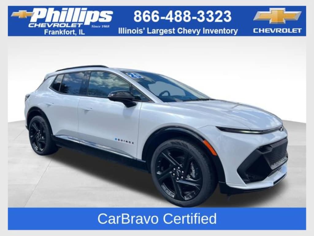 CarBravo Certified, AWD, Backup Camera, Remote Start, Pwr Dr Seat, Head-Up Display, Navigation, Side Blind Zone Alert, Heated Seats, Ventilated Seats, Power Liftgate, Apple CarPlay, Aluminum Wheels, Carfax Buyback Guarantee, Equinox EV RS, 4D Sport Utility, Electric Motor, 1-Speed Automatic, AWD, Iridescent Pearl Tricoat, Black w/Red Accents w/Evotex Seat Trim, 2-Way Front Passenger Power Lumbar, 4-Wheel Disc Brakes, 6-Speaker Audio System Feature, 6-Way Manual Front Passenger Seat Adjuster, 8-Way Power Driver Seat Adjuster, ABS brakes, AM/FM radio: SiriusXM with 360L, Auto High-beam Headlights, Auto-dimming Rear-View mirror, Automatic temperature control, Brake assist, Bumpers: body-color, Compass, Convenience Package II, Driver door bin, Driver Memory, Driver vanity mirror, Dual front impact airbags, Dual front side impact airbags, Dual Motor All-Wheel Drive (AWD), Dual-Zone Automatic Climate Control, Electronic Stability Control, Emergency communication system: OnStar and Chevrolet connected services capable, Evotex Seat Trim, Four wheel independent suspension, Front anti-roll bar, Front Bucket Seats, Front Electric AWD, Front Passenger 6-Way Power Seat Adjuster, Front reading lights, Fully automatic headlights, Head-Up Display, Heated door mirrors, Heated Driver and Front Passenger Seats Cushion and Seatback, Heated Rear Outboard Passenger Cushion, Heated steering wheel, Heated Wiper Park, Illuminated entry, Knee airbag, LED Headlamps, Low tire pressure warning, Navigation system: Google built-in compatibility (select service plan required, terms and limitations apply), Occupant sensing airbag, Outside temperature display, Overhead airbag, Overhead console, Passenger door bin, Passenger vanity mirror, Power door mirrors, Power Liftgate, Preferred Equipment Group 2RS, Radio: 17.7 Diagonal Advanced Color LCD Display, Rear anti-roll bar, Rear Camera Mirror, Rear Camera Mirror Washer, Rear seat center armrest, Rear window defroster, Rear window wiper, Remote keyless entry, Security system, SiriusXM with 360L Trial Subscription, Speed control, Split folding rear seat, Spoiler, Sport steering wheel, Steering wheel mounted audio controls, Telescoping steering wheel, Tilt steering wheel, Traction control, Trip computer, Turn signal indicator mirrors, Universal Home Remote, Uplevel Neutral Density LED Tail Lamps, Variably intermittent wipers, Ventilated Driver and Front Passenger Seats, Wheels: 21 Black Painted Aluminum. 2025 Chevrolet Equinox EV Iridescent Pearl Tricoat RS 4D Sport Utility AWD 1-Speed Automatic Electric Motor