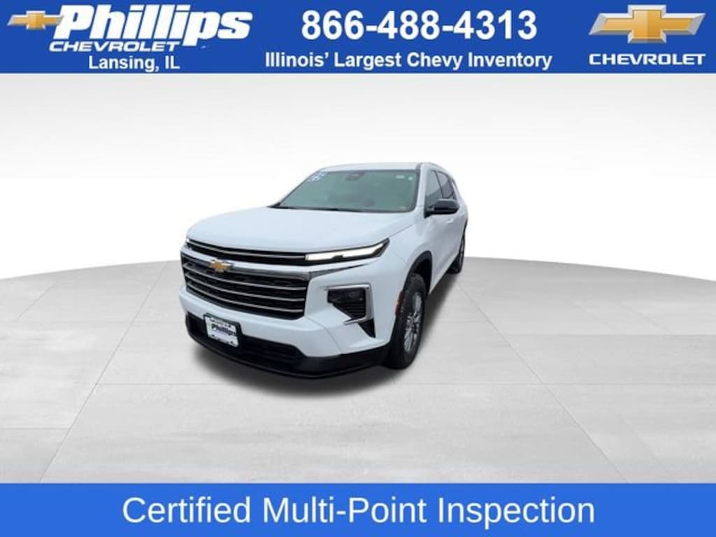 CarBravo Certified, Accident FREE, No Added Cert. Fees, Certified Multi-Point Inspection, AWD!, Navigation, Heated Seats, Heated Steering Wheel, Apple CarPlay, Keyless Entry, Forward Collision Alert, Side Blind Zone Alert, Rear Cross Traffic Alert, Backup Camera, BLUETOOTH, Power Windows/Locks, Power Seating, PUSH BUTTON START!, INTELLIBEAM, Remote Start, Power Liftgate, 18 WHEELS!, Lane Departure Warning, Lane Keep Assist, Adaptive Cruise Control, Carfax Buyback Guarantee, Traverse LT 2LT, 4D Sport Utility, 2.5L DOHC, 8-Speed Automatic, AWD, Summit White, Jet Black w/Premium Cloth Seat Trim, 3rd row seats: split-bench, 4-Way Manual Front Passenger Seat Adjuster, 4-Wheel Disc Brakes, 6-Speaker Audio System Feature, 8-Way Power Driver Seat Adjuster, ABS brakes, Air Conditioning, AM/FM radio: SiriusXM with 360L, Apple CarPlay/Android Auto, Auto High-beam Headlights, Automatic temperature control, Brake assist, Bumpers: body-color, Child-Seat-Sensing Airbag, Compass, Driver door bin, Driver vanity mirror, Dual front impact airbags, Dual front side impact airbags, Electronic Stability Control, Emergency communication system: OnStar, Four wheel independent suspension, Front anti-roll bar, Front Bucket Seats, Front Center Armrest, Front dual zone A/C, Front reading lights, Fully automatic headlights, Heated door mirrors, Heated front seats, Heated steering wheel, Illuminated entry, Low tire pressure warning, Navigation System, Occupant sensing airbag, Outside temperature display, Overhead airbag, Overhead console, Passenger door bin, Passenger vanity mirror, Power door mirrors, Power Liftgate, Preferred Equipment Group 2LT, Premium Cloth Seat Trim, Radio data system, Radio: : Audio System w/17.7 Diagonal Display, Rear air conditioning, Rear anti-roll bar, Rear reading lights, Rear window defroster, Rear window wiper, Remote keyless entry, Security system, SiriusXM with 360L Trial Subscription, Speed control, Speed-sensing steering, Spoiler, Steering wheel mounted audio controls, Tachometer, Telescoping steering wheel, Tilt steering wheel, Traction control, Trip computer, Turn signal indicator mirrors, Variably intermittent wipers, Voltmeter, Wheels: 18 Grazen Metallic Machined-Face Aluminum. 2025 Chevrolet Traverse Summit White LT 4D Sport Utility 2LT AWD 8-Speed Automatic 19/24 City/Highway MPG 2.5L DOHCCertification Program Details: Type your description hereWith the internet today, a great value shouldnât be hard to find. Here at Phillips Chevrolet we do the research for you. We monitor the market daily to ensure our customers are getting the best value achievable. We price all of our vehicles to make the buying process as simple and easy as possible. Our internet prices are just one factor that makes us the #1, #2, and out to be the #3 Chevrolet dealerships in Illinois. The #2 Chevy dealership in Illinois is conveniently located just a one block south of 80/94, at 17730 S Torrence Avenue in Lansing, IL 60438.