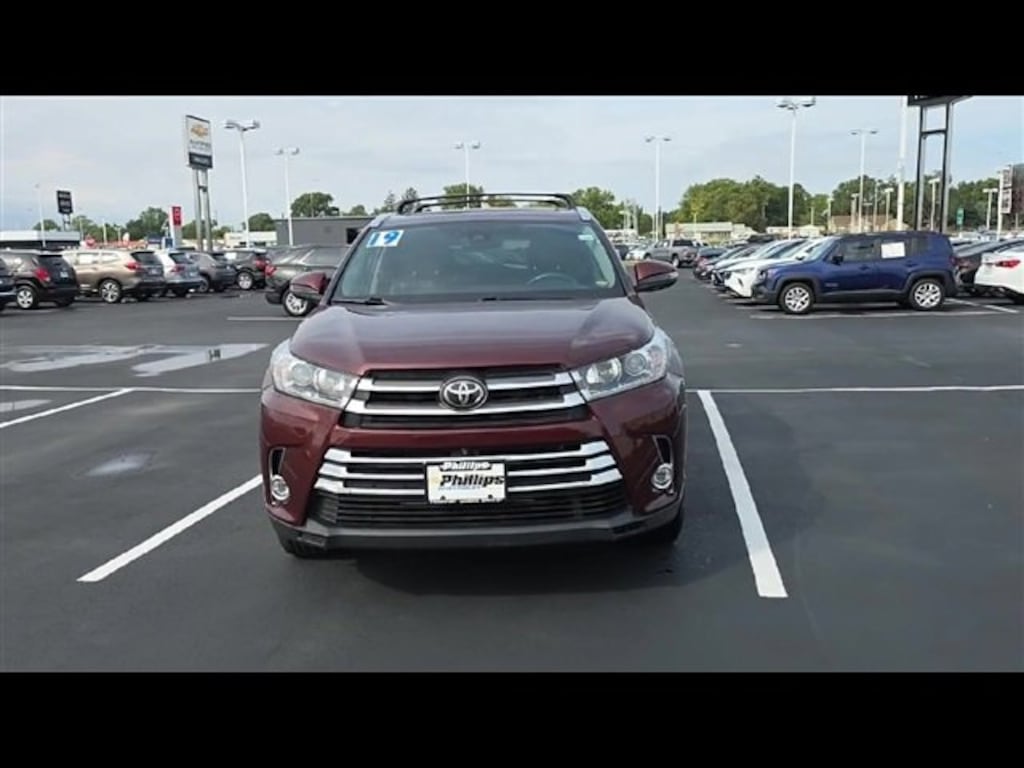 Carbravo Certified, One Owner, Carfax- Accident Free, No Added Cert Fees, Keyless Entry, SUNROOF, 4WD, Auto Check - Accident free, Back Up Camera, Bluetooth, Cruise Control, Heated seats, Power lift gate, Power Locks, Power Seating, Power Windows, Push Button Start, Highlander Limited Platinum, 4D Sport Utility, 3.5L V6, 8-Speed Automatic Electronic with ECT-i, AWD, Ooh La La Rouge Mica, Black w/Perforated Leather Seat Trim, 12 Speakers, 3.003 Axle Ratio, 3rd row seats: split-bench, 4-Wheel Disc Brakes, ABS brakes, Active Cruise Control, Alloy wheels, AM/FM radio: SiriusXM, Auto High-beam Headlights, Auto-dimming Rear-View mirror, Automatic temperature control, Bird's Eye View Camera, Brake assist, Bumpers: body-color, Delay-off headlights, Driver door bin, Driver vanity mirror, Dual front impact airbags, Dual front side impact airbags, Electronic Stability Control, Emergency communication system: Safety Connect, Exterior Parking Camera Rear, Four wheel independent suspension, Front anti-roll bar, Front Bucket Seats, Front Center Armrest, Front dual zone A/C, Front fog lights, Front reading lights, Fully automatic headlights, Garage door transmitter, Heated door mirrors, Heated front seats, Heated rear seats, Heated Steering Wheel, Heated steering wheel, Heated/Ventilated Front Bucket Seats, Illuminated entry, Knee airbag, Leather Shift Knob, Low tire pressure warning, Memory seat, Navigation System, Occupant sensing airbag, Outside temperature display, Overhead airbag, Overhead console, Panic alarm, Panoramic View Monitor, Passenger vanity mirror, Perforated Leather Heated Second-Row Outboard Seats, Perforated Leather Seat Trim, Power door mirrors, Power driver seat, Power Liftgate, Power moonroof, Power passenger seat, Power steering, Power windows, Radio: Entune Premium JBL Audio w/Nav & App Suite, Rain-Sensing Windshield Wipers, Rear air conditioning, Rear anti-roll bar, Rear reading lights, Rear window defroster, Rear window wiper, Reclining 3rd row seat, Remote keyless entry, Roof rack: rails only, Safety Connect, Security system, Speed control, Speed-sensing steering, Split folding rear seat, Spoiler, Steering wheel mounted audio controls, Tachometer, Telescoping steering wheel, Tilt steering wheel, Traction control, Trip computer, Turn signal indicator mirrors, Variably intermittent wipers, Ventilated front seats. CARFAX One-Owner. Clean CARFAX. Certified. Ooh La La Rouge Mica 2019 Toyota Highlander Limited Platinum AWD 8-Speed Automatic Electronic with ECT-i 3.5L V620/26 City/Highway MPGCertification Program Details: Type your description here Awards:* 2019 KBB.com Best Resale Value Awards * 2019 KBB.com 12 Best Family Cars * 2019 KBB.com Brand Image AwardsWith the internet today, a great value shouldn't be hard to find. Here at Phillips Chevrolet we do the research for you. We monitor the market daily to ensure our customers are getting the best value achievable. We price all of our vehicles to make the buying process as simple and easy as possible. Our internet prices are just one factor that makes us the #1, #2, and out to be the #3 Chevrolet dealerships in Illinois. The future #3 Chevy dealership in Illinois is conveniently located at 1400 Locke Drive, the corner of I-57 & IL 50, in Bradley/Bourbonnais, IL 60914.