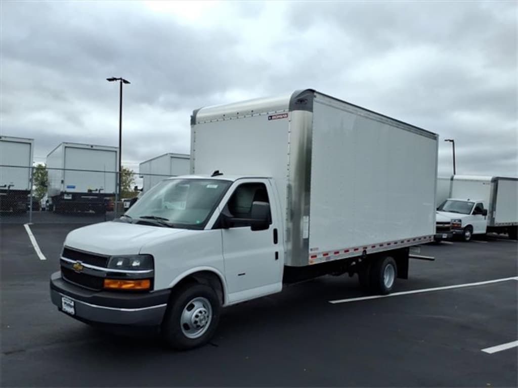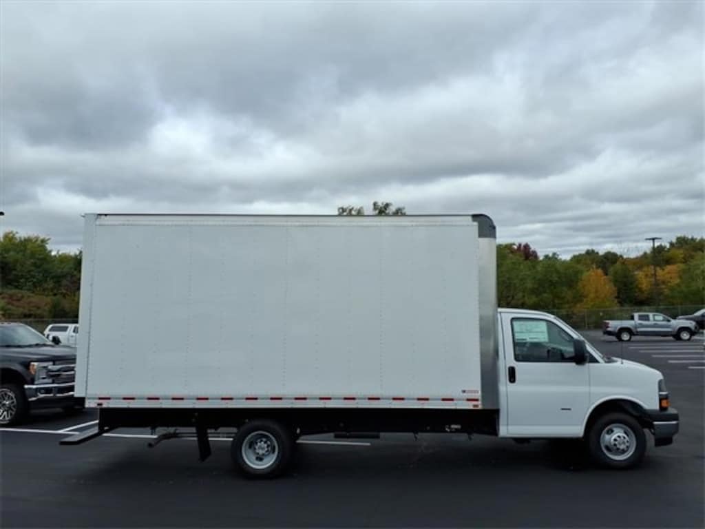 2025 Chevrolet Express Cutaway 3500. 6.6L v8 gas, 12,300LB GVWR. Driver and power convenience package. Morgan Aluminum sheet and post Box truck with ramp. 17'L x 96W x 91H nominal dimensions. 90.63 inside width, 198.49 inside length. .
