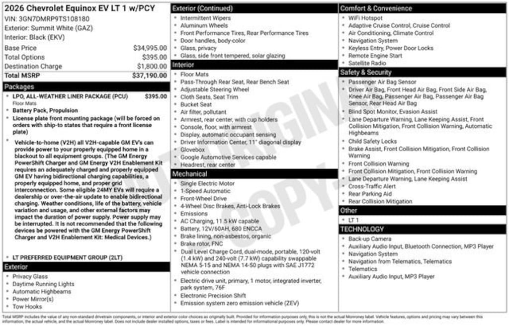 - Warranty: <<< Preliminary 2026 Warranty >>>