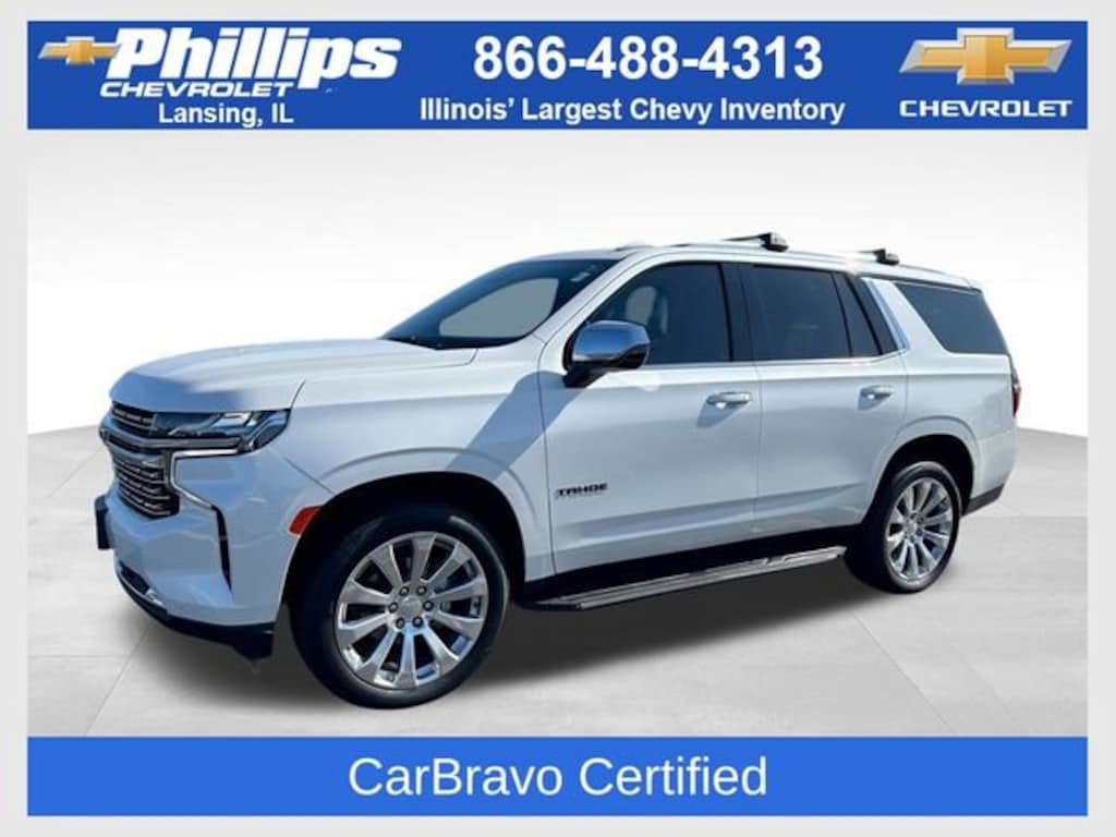 CarBravo Certified, ONE Owner!, No Added Cert. Fees, Panoramic Sunroof, Bose Audio, 4WD!, Heated Seats, Heated Steering Wheel, Apple CarPlay, Keyless Entry, Ventilated Seats, Pedestrian Detection, Forward Collision Alert, Side Blind Zone Alert, Rear Cross Traffic Alert, Backup Camera, BLUETOOTH, Power Windows/Locks, Power Seating, PUSH BUTTON START!, Front Park Assist, Remote Start, Lane Departure Warning, Rear Park Assist, Lane Keep Assist, Cruise Control, Carfax Buyback Guarantee, Tahoe Premier, 4D Sport Utility, EcoTec3 5.3L V8, 10-Speed Automatic with Overdrive, 4WD, Iridescent Pearl Tricoat, Jet Black Leather. 2023 Chevrolet Tahoe Iridescent Pearl Tricoat Premier 4D Sport Utility 4WD 10-Speed Automatic with Overdrive 15/20 City/Highway MPG EcoTec3 5.3L V8
