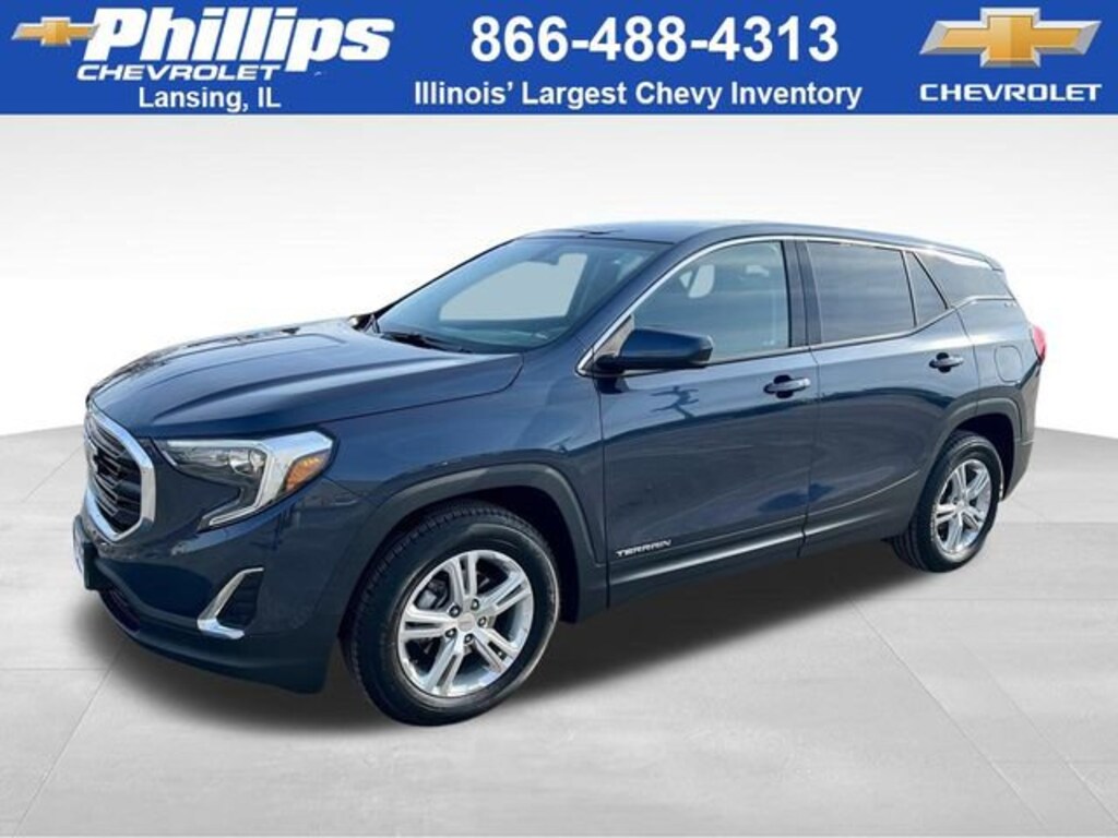 Carfax Buyback Guarantee. 2018 GMC Terrain Blue Steel Metallic SLE 4D Sport Utility FWD 9-Speed Automatic 26/30 City/Highway MPG 1.5L DOHC26/30 City/Highway MPG Recent Arrival!GM Details:* Vehicle History* Transferable Warranty* Warranty Deductible: $0* Roadside Assistance* 24 months/24,000 miles (whichever comes first) Certified Pre-Owned Scheduled Maintenance Plan and 3 days/150 miles (whichever comes first) Vehicle Exchange Program. SiriusXM 3-month trial subscription* Limited Warranty: 12 Month/12,000 Mile (whichever comes first) from certified purchase date* 172 Point Inspection* Powertrain Limited Warranty: 72 Month/100,000 Mile (whichever comes first) from original in-service dateWith the internet today, a great value shouldnât be hard to find. Here at Phillips Chevrolet we do the research for you. We monitor the market daily to ensure our customers are getting the best value achievable. We price all of our vehicles to make the buying process as simple and easy as possible. Our internet prices are just one factor that makes us the #1, #2, and out to be the #3 Chevrolet dealerships in Illinois. The #2 Chevy dealership in Illinois is conveniently located just a one block south of 80/94, at 17730 S Torrence Avenue in Lansing, IL 60438.