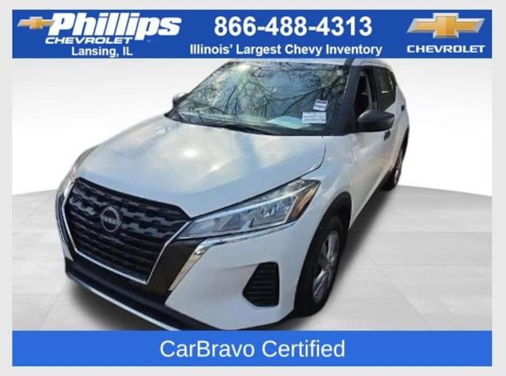 CarBravo Certified, ONE Owner!, Accident FREE, No Added Cert. Fees, Certified Multi-Point Inspection, Apple CarPlay, Forward Collision Alert, Side Blind Zone Alert, Rear Cross Traffic Alert, Backup Camera, BLUETOOTH, Power Windows/Locks, GAS SAVER!, Lane Departure Warning, Carfax Buyback Guarantee, Kicks Play S, 4D Sport Utility, 1.6L 4-Cylinder DOHC 16V, CVT, FWD, Fresh Powder, Charcoal w/Cloth Seat Trim with Single Stitch, 16 Steel Wheels with Full Covers, 6 Speakers, ABS brakes, Air Conditioning, AM/FM Audio System, AM/FM radio, Apple CarPlay/Android Auto, Blind Spot Warning, Brake assist, Bumpers: body-color, Center Armrest with Storage, Cloth Seat Trim with Single Stitch, Driver door bin, Driver vanity mirror, Driver's Seat Mounted Armrest, Dual front impact airbags, Dual front side impact airbags, Electronic Stability Control, Front anti-roll bar, Front Bucket Seats, Front reading lights, Front wheel independent suspension, Fully automatic headlights, Illuminated entry, Knee airbag, Low tire pressure warning, Occupant sensing airbag, Outside temperature display, Overhead airbag, Panic alarm, Passenger door bin, Passenger vanity mirror, Power door mirrors, Power steering, Power windows, Radio data system, Rear Parking Sensors, Rear reading lights, Rear side impact airbag, Rear window defroster, Rear window wiper, Remote keyless entry, Speed control, Split folding rear seat, Sport steering wheel, Steering wheel mounted audio controls, Tachometer, Telescoping steering wheel, Tilt steering wheel, Traction control, Trip computer, Variably intermittent wipers. 2025 Nissan Kicks Play Fresh Powder S 4D Sport Utility FWD CVT 31/36 City/Highway MPG 1.6L 4-Cylinder DOHC 16V31/36 City/Highway MPG Recent Arrival!Certification Program Details: Type your description hereWith the internet today, a great value shouldnât be hard to find. Here at Phillips Chevrolet we do the research for you. We monitor the market daily to ensure our customers are getting the best value achievable. We price all of our vehicles to make the buying process as simple and easy as possible. Our internet prices are just one factor that makes us the #1, #2, and out to be the #3 Chevrolet dealerships in Illinois. The #2 Chevy dealership in Illinois is conveniently located just a one block south of 80/94, at 17730 S Torrence Avenue in Lansing, IL 60438.